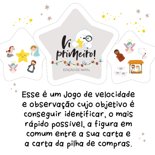 A caixa contém um livrinho, um gancho com ventosa, tintas para ladrilho e vidro, esponja do cordeirinho Jesus, atividade lúdica, quadrinho/cartão impresso com versículo, um cartão com oração e instruções sugerindo como usar o material.