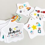 Itens: 21 cartas em formato de estrela + Livrinho formato acordeon com história de Natal + carta com instruções.